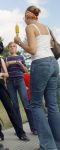 Summer heat, sweatin' bodies and bubble butts in tight jeans... pure eye candy! Thanks to candidBob for these great shots.